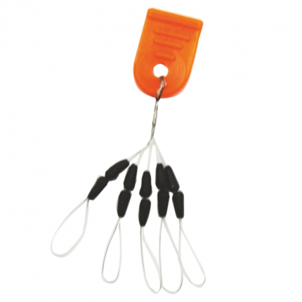 Univerzální sada černých gumových zarážek na vlasec v různých velikostech. Vhodné pro použití při plavané, feederu nebo přívlači. Zajišťují spolehlivou fixaci komponentů na vlasci a jednoduše se nasazují pomocí smyčky.