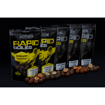 Celý popisBoilies Rapid Excellent je vhodné i na kratší vycházky, kdy nemáme čas na rozkrmení a pozvolné rozjetí krmného místa. Vzhledem k použitým ingrediencím a vyváženému složení jej však ryby ochotně přijímají i po několika dnech. Díky použití R-FACTORu toto boilies začíná pracovat krátce po vhození do vody, ale nastražené vydrží i 24 hodin (v závislosti na podmínkách konkrétní lokality). Aroma jednotlivých druhů jsou vždy výsledkem našeho vlastního vývoje, a proto působí na kapry neokoukaně.