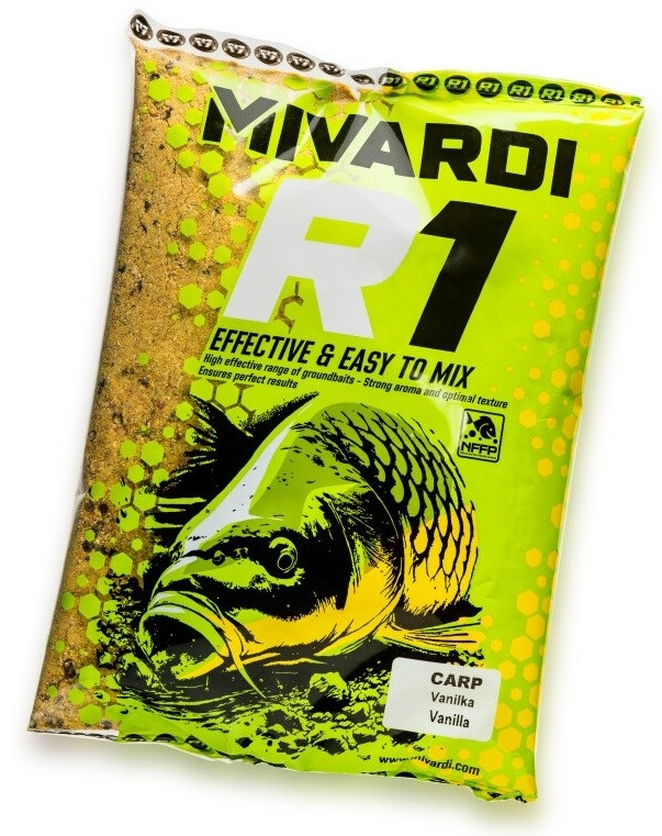 Směsi R1 obsahují peletky různých barev, které podporují vizuální stimulaci ryb. Dále jsou obohaceny o mleté zmrzlinové oplatky, jež zajišťují dokonalou lepivost a optimální konzistenci ve vodě. Speciálně vybrané chuťové stimulanty, jako jsou Kukuřice, Biscuits a Strouhanka, zvyšují atraktivitu směsi a podporují aktivní příjem potravy. Oproti běžným krmivům nabízejí směsi R1 mnohem vyšší účinnost a atraktivitu, kterou si všimnete již na první pohled. Rozmanitá zrnitost, správná konzistence, výběr těch nejúčinnějších příchutí a optimální chování ve vodě znamenají vyšší šanci na úspěšný lov. Směs postačí pouze navlhčit a již nemusíte dále upravovat. Směsi jsou vhodné nejen pro methodfeeder, feeder, plavanou ale i pro klasickou kaprařinu.