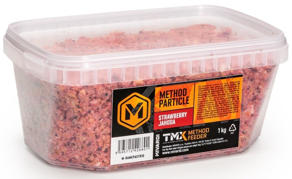 Jednotlivé druhy semen jsou vařeny v páře a následně drceny na směs s optimální zrnitostí a lepivostí. Tento nejšetrnější způsob tepelné úpravy zachovává přirozenou chuť a vůni. Při jeho použití je rovněž zachována i maximální atraktivita přírodních složek a nedochází ke ztrátě živin, jako je tomu při vaření ve vodě. Směs má mírně nakyslou chuť, způsobenou přidáním malého množství kyseliny mravenčí. Ta působí jako atraktor pro ryby a zároveň plní funkci šetrného přírodního konzervantu. Method partikl je dodáván v několika účinných příchutích a je plně připraven k použití. Díky své konzistenci výborně drží v krmítku. Po dopadu do vody okamžitě uvolňuje pro ryby neodolatelný mrak jemných částic. Velké množství hrubších kousků pak udržuje ryby delší dobu v lovném místě a napomáhá k selekci větších kusů. Tento partikl Mivardi neobsahuje glycerin, monopropylenglykol ani jiné podobné stabilizační látky, které obalují jednotlivá zrna a potlačují jejich přirozenou atraktivitu a zhoršují fungování v chladnější vodě.