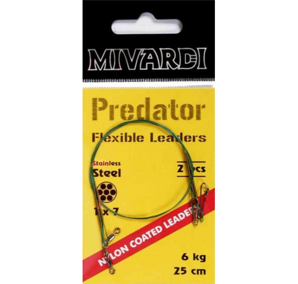 Ocelová lanka pro lov dravců ze sedmi pramenů s kvalitním nylonovým potahem. Dodávána v praktickém balení po dvou kusech. K dispozici jsou různé varianty, délky a nosnosti.