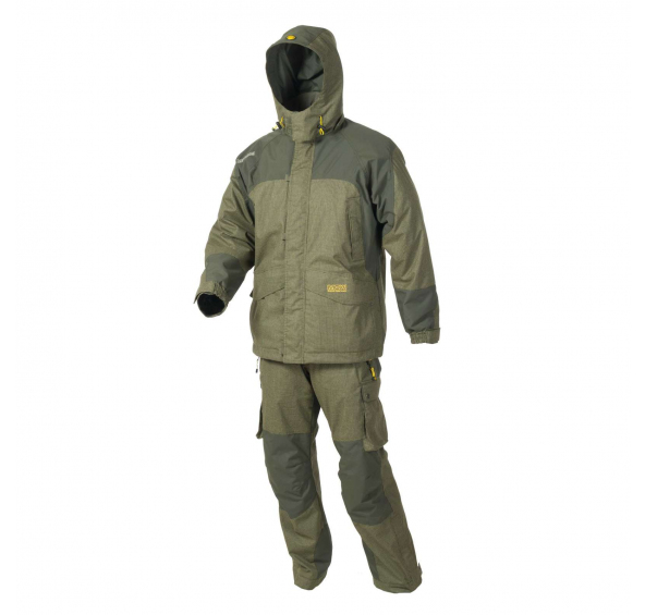 Nekompromisní oblek vyvinutý pro náročné rybáře. Vrchní bunda a kalhoty s inovativním systémem tří vrstev a dvou membrán zajišťují nekompromisní komfort, nepromokavost a prodyšnost. Pokud by se minimální množství vody ve skutečně extrémních situacích dostalo skrz první membránu (na vnější vrstvě), bude s jistotou zachyceno druhou membránou (na prostřední vrstvě). Samozřejmě obě tyto membrány jsou stejně prodyšné a tím zajišťují konstantní odvod par. Tento vícevrstvý systém efektivně chrání i proti větru. Vnější vrstva je tvořena z odolného ripstop materiálu, kombinovaného s vysoce oděruvzdorným materiálem na ramenou, kolenou a zadní části kalhot. Oba tyto materiály mají pokročilou hydrofobní úpravu. Tato impregnace výrazně zvyšuje celkovou úroveň ochrany proti vlhku a dešti a snižuje špinění obleku. Funkční vnitřní bunda je odepínatelná, lehká, hřejivá a dobře prodyšná. Optimálně navržený střih umožňuje pohodlné sezení i chození stejně jako nahazování, vnadění nebo zdolávání ryby bez omezení pohybu. Lemy rukávů i nohavic jsou nastavitelné pomocí širokých suchých zipů. Táhla zipů jsou prodloužena šňůrkami a umožňují snadné uchopení i v rukavicích.