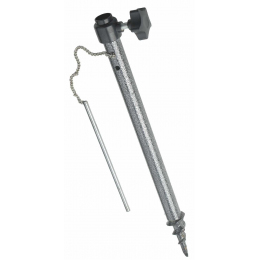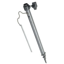 Robustní, celokovový držák deštníku, určený pro zavrtání do země a ukotvení deštníku ve tvrdém podkladu.