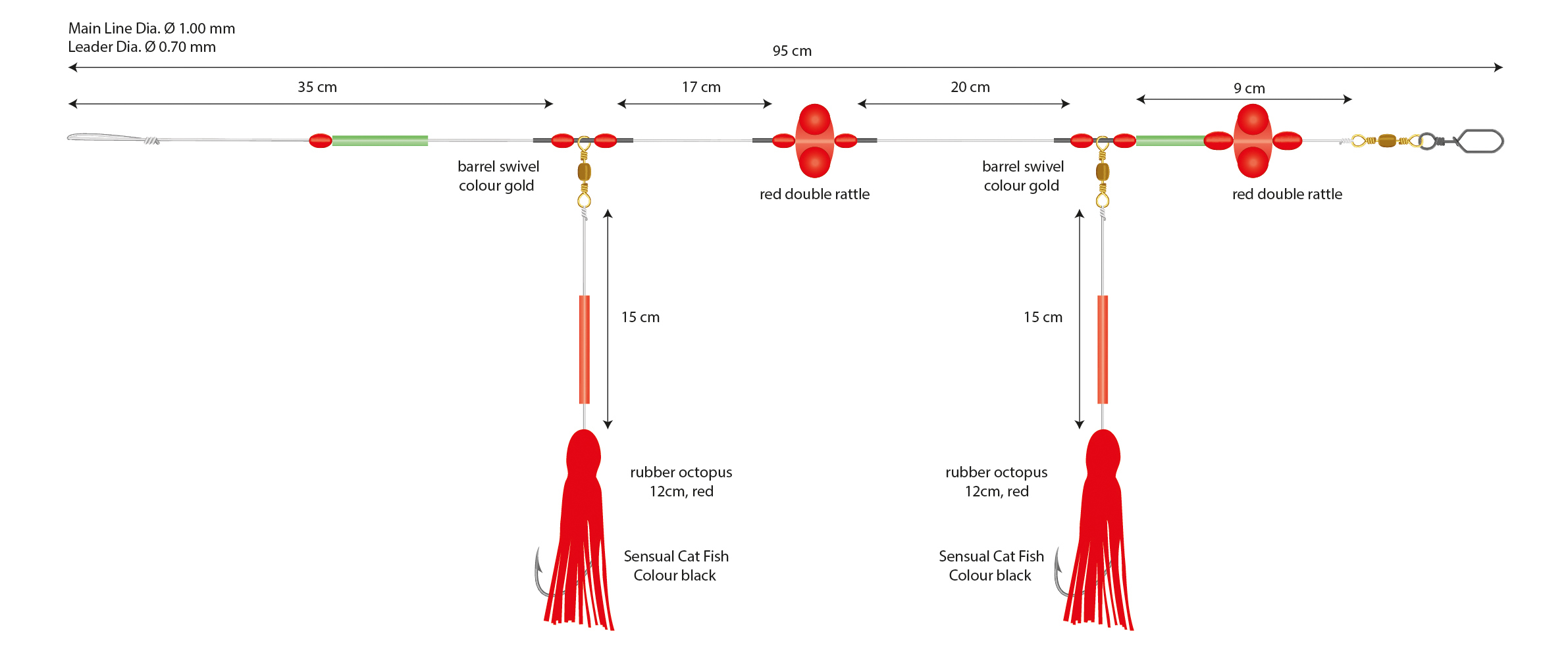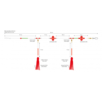 Montáž konstruovaná s důrazem na každý detail - jeho jednotlivé součásti, rolničky a červené chobotnice účinně vábí vlkouše a provokují je k útoku. Montáž je nejúčinnější na hloubkách o 5 - 50 m....