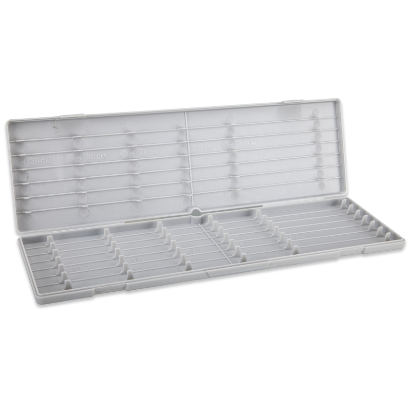 Praktické, tvrdé pouzdro pro skladování a přepravu návazců. Tato verze je určena pro návazce v délce 30 cm. Box má přepážky pro přesné uložení návazců v délce 10; 15; 20; 25 a 30 cm. Do krabičky se vejde až 100 návazců!