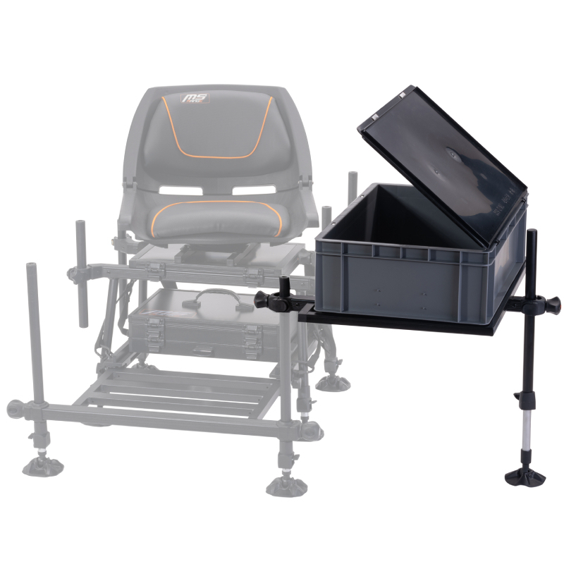 Celý popisVelký rozkládací stůl, který je vyrobený tak, že na něj lze umístit standardní box o základních rozměrech 60 x 40 cm. Stůl je podepřen přídavnou nohou a je extrémně stabilní. Na druhé straně jsou umístěné dva držáky, kterými se stůl přidělává ke křeslu či bedně. Stůl lze připevnit téměř ke každé bedně. Všechny nástavce jsou navíc vybaveny bezproblémovým klipovým systémem, který lze použít na průměry nohou 25 - 36 mm. Pomocí podpěrné nohy, kterou lze zakoupit i samostatně (č. výr. 7142 606), lze stůl připevnit také na zadní stranu bedny a poté jej podepřít dvěma přídavnými nohami.