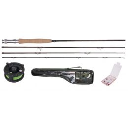 Muškařský set. Obsahuje muškařský prut AFTMA 5-6, naviják se šňůrou fluorozelené barvy a praktickou krabičkou sněkolika muškami. Zahrnuje: