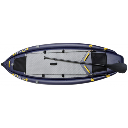 Obsahuje jednu hlavní nafukovací komoru ze silnostěnného dvouvrstvého materiálu potaženého PVC pro optimální pevnost s jedním bezpečnostním ventilem a protiskluzovým povrchem z EVA pěny o tloušťce 5 mm. Dále má dva nezávislé boční plováky, každý s bezpečnostním ventilem. Dvě sítě (jedna vpředu a jedna vzadu) slouží k přepravě tašek, nástrah a vybavení. Obsahuje také 10 D kroužků z odolné nerezové oceli pro libovolné uchycení výbavy. Na palubě jsou dále dva uchycovací pásky pro upevnění prutů nebo pádla. Stabilitě na vodě pomáhají dvě malé ploutve a jedna větší odnímatelná ploutev na spodní straně.