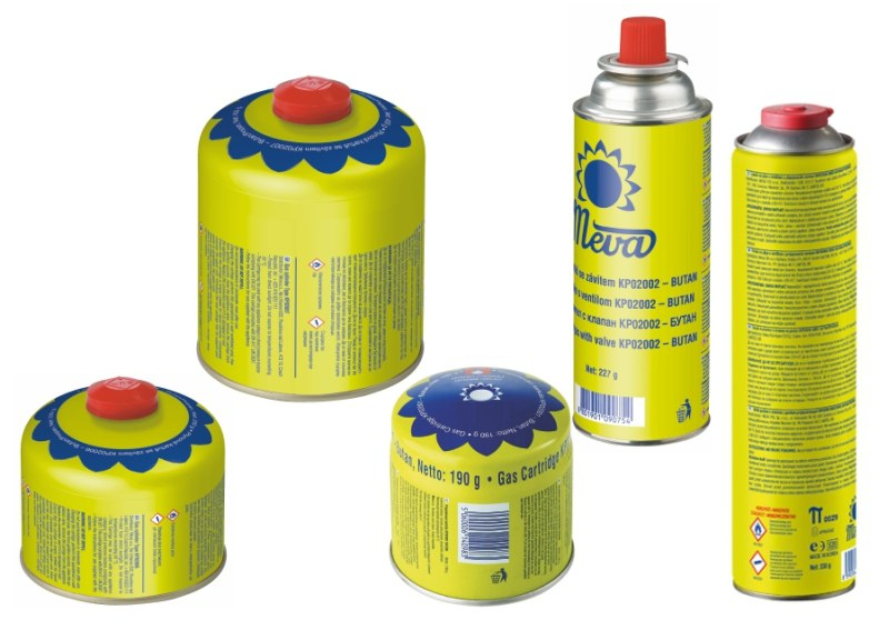 Náhradní tlakové kartuše pro bezpečně používání plynových spotřebičů značky MEVA. Vždy si pozorně přečti obj. číslo náhradní kartuše u výrobku.
