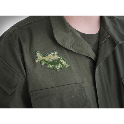 Imageová nášivka zlato-zelené barvy ve tvaru kapra, kterou si můžete vylepšit jakýkoli kus svého oblečení, případně tašku nebo jinou textilii. S tímto doplňkem budete vyčnívat z řady a odlišíte se od ostatních. Technické parametry: Rozměry: 8,5x5cm