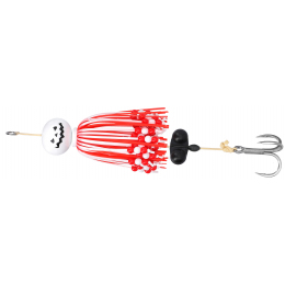BOGEY - sumcová nástraha určená k lovu s vábničkou. Vzhled a zvuk lákají sumce k útoku. Účinná na těžkých lovištích. Vybavena korálky, rolničkou, pletenou šňůrou a trojháčky. Pro vyšší atraktivitu lze na trojháčky nasadit rousnice.