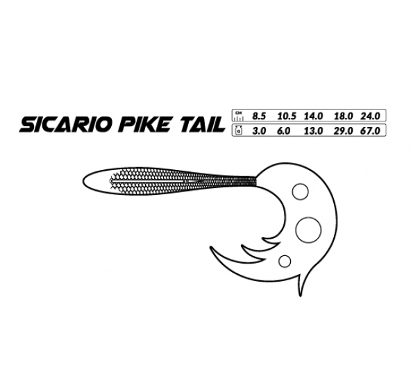 Díky realistickému vzhledu, intenzivní akci ocásku a výraznému chvění těla je měkká nástraha Sicario mimořádně efektivní pro lov různých druhů dravců. Menší velikosti přilákají okouna a candáta, větší vám určitě přinesou štiku.