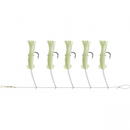 S 5 háčky a 7cm chobotničkami. Pro optimální úspěch doporučujeme přidat kousek nástražní rybky na háček. Perfektní na okouníky a štikozubce. Průměr vlasce: ø 0.80mm Délka: 500cm