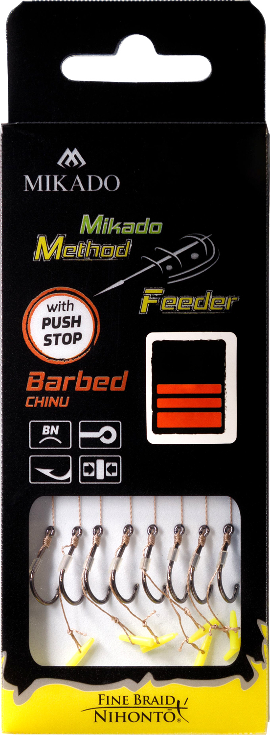 Mikado Návazec Mf S Push Stop Háček S Protihrotem Číslo 10 / Pletená Šňůra 0.12mm/10cm 8 Ks