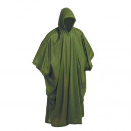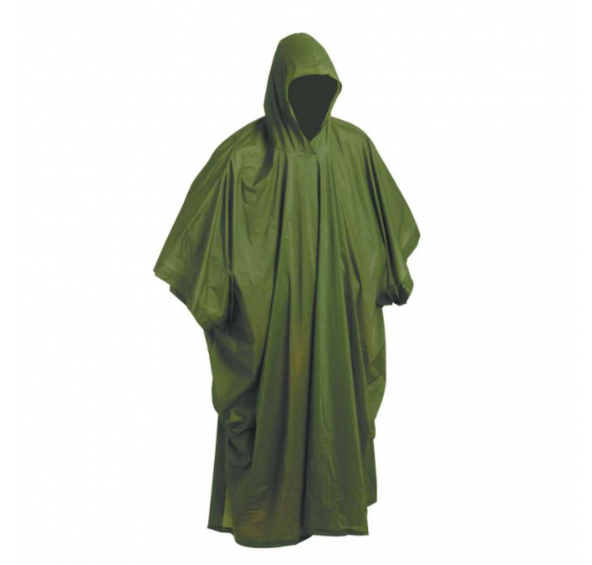 Pončo v zeleném zbarvení pro ochranu před deštěm.