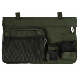 Nový vylepšený organizér na křeslo nebo lehátko. Je ideální na uložení rybářských dokladů, peněženky, peněz, atd... Vyrobenou z hlavní kapsy na suchý zip a menší kapsičky s klasickým zipem mesh sítoviny na pití či na klíče apod.