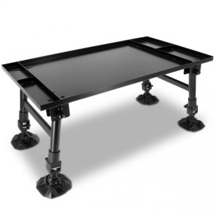 Tento stolek hravě uspokojí přání všech rybářů. Stolek je velký, ale přesto velmi lehký, skladný a stabilní. Navíc velkou výhodou jsou jeho široké, výškově polohovatelné patky na nohou. Celá plocha stolku je hliníková, s 5ti oddělenými částmi. Jedná se o produkt patentovaný značkou NGT.