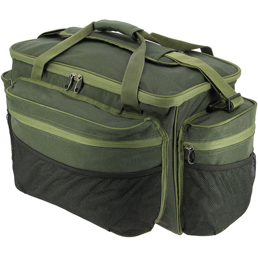 Velká přenosná taška pro rybáře s prostornou hlavní přihrádkou a třemi velkými vnějšími kapsami na zip a ze síťoviny. Samozřejmostí jsou polstrované rukojeti a nastavitelný ramenní popruh s polstrováním.