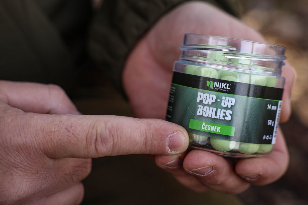 Plovoucí boilies ve žluté barvě s česnekovou příchutí.
