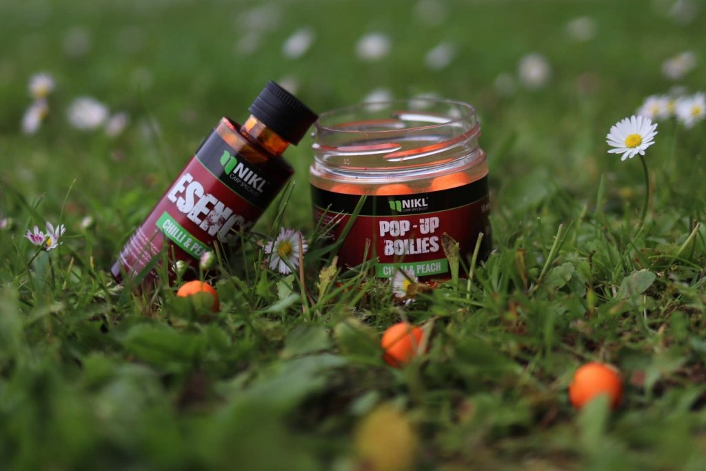 Plovoucí boilies v oranžové barvě a příchuti Chilli & Peach.