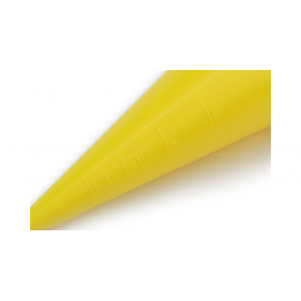 Žlutá špička, na které se nachází stupnice průměrů, podle které je možné špičku seříznout pod potřeby a to až na průměr 34 mm....