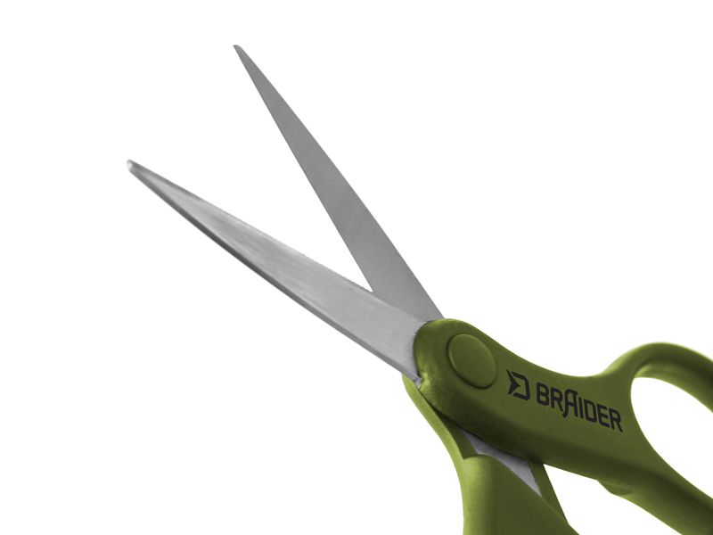 Jejich délka je 14cm. Délka samotné čepele je 5.5cm. Mají velmi ostré a silné čepele, které jsou vyrobeny z kvalitní nerezové oceli. Úchyty jsou vyrobeny ze zeleného plastu s nápisem BRAIDER. Odteď vám už žádná splétaná šňůra nebude stát v cestě.