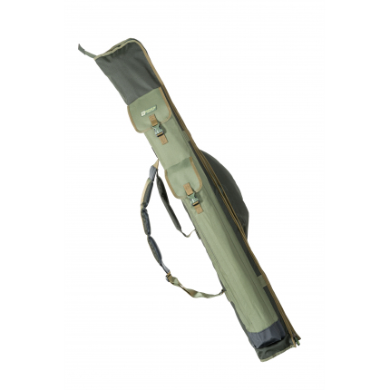 Kvalitně navržená série obalů na trojdílné nebo dvojdílné kaprové pruty s kompletním polstrováním, vyrobená z pevného a nepromokavého materiálu B-POL600D. Obal je vybaven přepravními uchy i polstrovaným ramenním popruhem, prostornými kapsami na deštník, vidličky a další příslušenství. Je osazen desénovými táhly zipů MIVARDI....