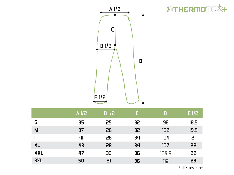 Barevně jsou kalhoty ThermoTEX Plus+ laděny do tmavé zelené a černé barvy se zářivě žlutými prvky, čímž se stanou nejen užitečnou a vysoce funkční, ale také pěknou součástí vašeho outfitu.
