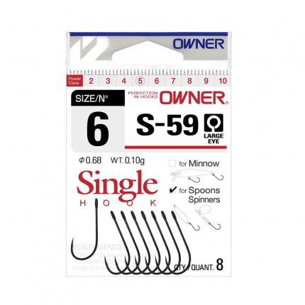 OWNER S-59 Ideální jednoháček pro nahrazení trojháčků (wobler, rotačka, plandavka) na sladkovodní a pobřežní pívlač. Je zejména vhodný do oblastí se spoustou trávy nebo vázek, které činí lov s trojháčky prakticky nemožný. Tyto jednoháčky také minimálně poškodí ulovené ryby, při aplikaci metody "chyť a pusť".