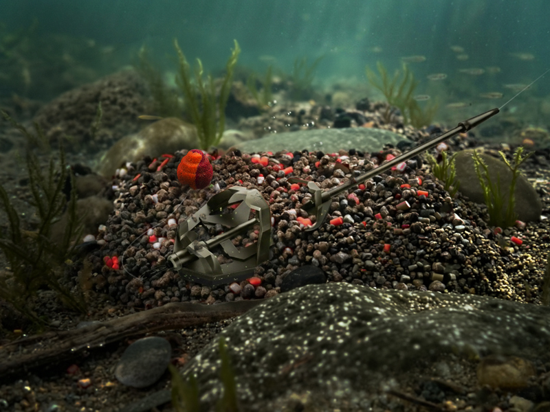 3. Nastražte waftersku na osten, vložte do formičky spolu s peletami a vtlačte do method feeder krmítka.
