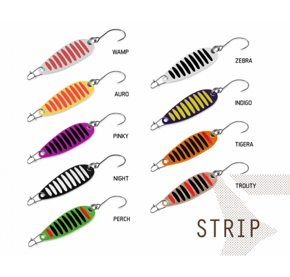 Plandavky série Delphin STRIP jsou ideálními umělými nástrahami pro revíry typu Trout Area. Jejich tělo je vyrobeno ze zinkové slitiny. Jsou vybaveny kvalitním jednoháčkem BOMB! HardLure s protihrotem a karabinkou FASTLOCK MICRO SNAP, které jsou zárukou, že o svůj úlovek nepřijdete. Kromě pstruhů nimi nepohrdnou ani menší dravé ryby na jezerech či vodních tocích. To, že jsou velmi lákavé a dravci se jimi nechají snadno vyprovokovat, je vidět už na první pohled. Plandavky STRIP mají pruhy, které dokonale imitují živou nástrahu.