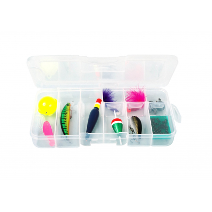 Krabičku využijete na jakékoli rybářské drobnosti, bižuterii, nebo i samotné nástrahy jako jsou různé gumičky, třpytky nebo woblery. Krabička má několik přihrádek, které lze ještě částečně doupravit pomocí přidaných přepážek.