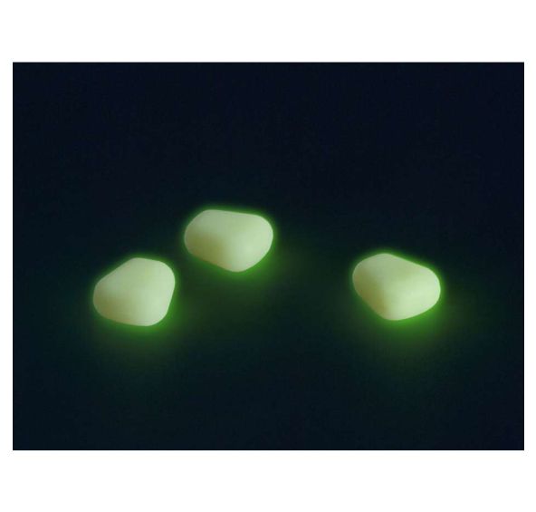 Luminiscenční, plovoucí imitace kukuřičných zrnek, která po nasvícení umělým zdrojem světla září zelenou barvou.
