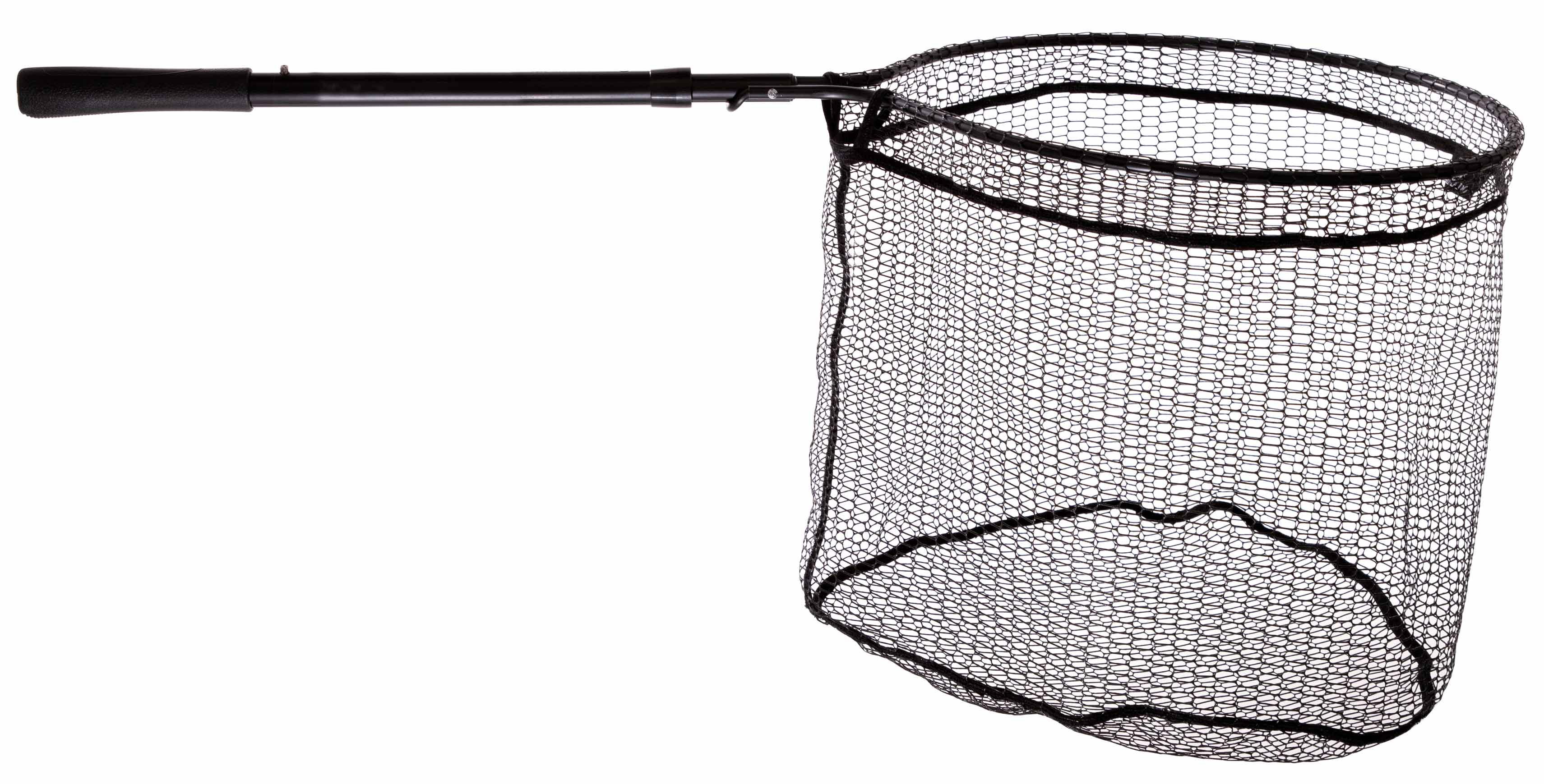 Podběrák s pogumovanou síťovinou a automatickou rukojetí, která umožňuje okamžité prodloužení dosahu podběráku o dalších 30 cm.