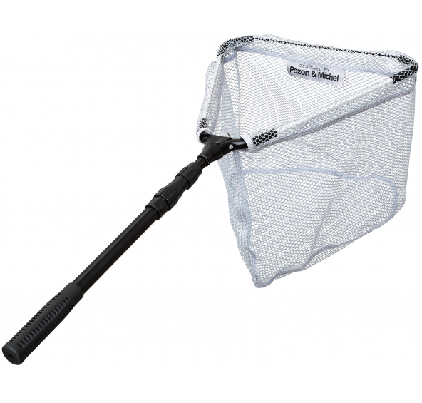 Teleskopický skládací podběrák. Kovový kříž a pogumovaná síť pro její maximální životnost i šetrnost k rybám. Délka 150 cm, síť 40x40 cm, hloubka 30 cm, skladná délka 54 cm.