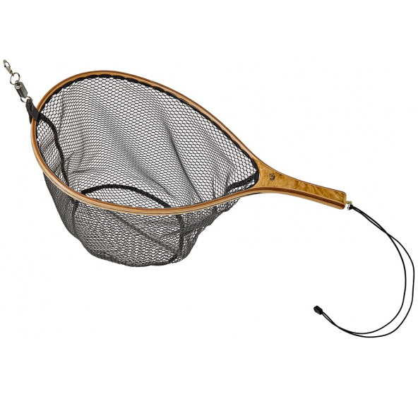 Hlavní rám je vyroben z lakovaného dřeva, síťka je pogumovaná pro maximální ochranu ryb. Součástí podběráku je i magnetický klip, díky kterému jej snadno upevníte k vestě nebo opasku.