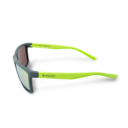 Polarizovaná růžová skla z triacetát celulózy se vyznačují skvělými vizuálními vlastnostmi, nízkou hmotností a mechanickou odolností. Navíc blokují škodlivé paprsky UVA, UVB a UVC a tím dokonale chrání váš zrak. Povrchová úprava s označením Revo zlepšuje kontrast a zvýraznění barev, poskytuje také ochranu vůči poškrábání, tím prodlužuje životnost a zlepšuje optické vlastnosti skla. Revo nátěr je navíc hydro a oleofobní (odpuzuje vodu a mastnotu), čímž jsou brýle snadněji udržovatelné. Zrcadlový finish zlaté barvy dodává brýlím stylový look a redukuje oslnění od vody nebo sněhu během jasných dní. SG AQUAS disponují plovoucím rámem, takže se nemusíte obávat, že byste o ně po pádu do vody přišli. Brýle mají stylový moderní rám, flexibilní fluo zelená ramínka a gumovou nosní opěrku. Pouzdro je černé barvy s výrazným zeleným lemem a je doplněno karabinou pro snadné uchycení.