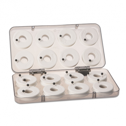 Plastové boxy s cívkami pro navíjení návazců. Cívky jssou z EVA materiálu a opatřeny špendlíky pro zajištění háčků. Boxy jsou přizpůsobení počtu cívek a jsou zajištěny magnetickým uzávěrem.Model L 8 ? 7 cmModel S 16 ? 4,5 cmobj.č.velikostrozměryprůměršpulkyšpendlíky8830011S21,5 x 11 x 3 cm? 4,5 cm16218830010L32 x 9,5 x 3,5 cm? 7 cm810...