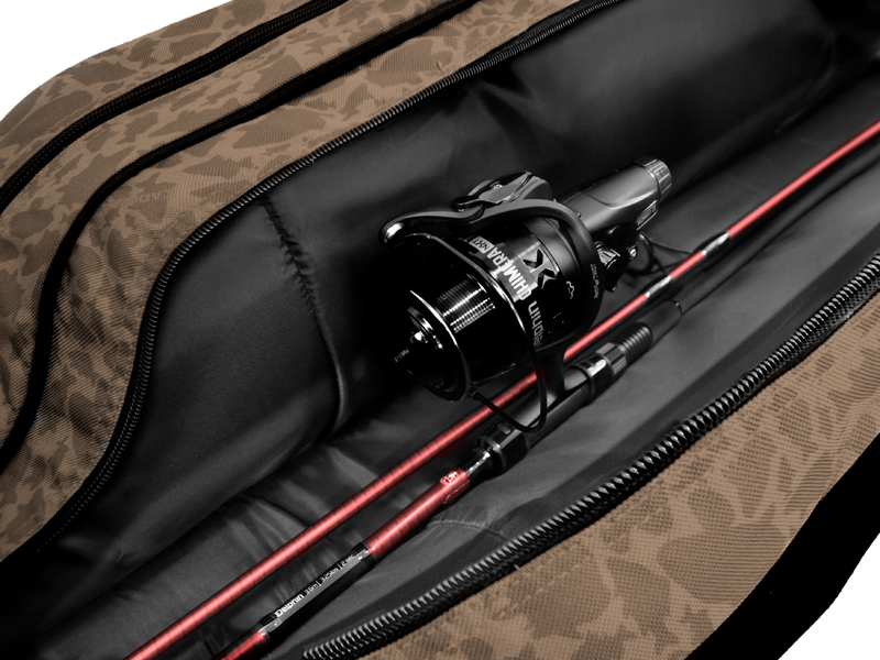 Prémiové a do detailů propracované kaprařské pouzdro, doplňující sérii produktů z řady AREA s jedinečnou kamufláží CARPATH. Stěny pouzdra jsou důkladně polstrované 6mm hrubou výstelkou a vnitřní prostor poskytuje dostatek místa pro pohodlné uložení jakýchkoliv kaprařských prutů s navijáky. Dokonce i pruty s 50mm naváděcím očkem se do pouzdra vejdou snadno a s dostatečnou rezervou. Každá komora má zvláštní zipovatelný vstup, což zajišťuje, že pruty jsou po celou dobu od sebe odděleny a dokonale zafixované pomocí praktických uložení ve spodní části a také páskami se suchým zipem. Díky zmíněným vlastnostem je zaručeno, že během transportu a při manipulaci s pouzdrem je výbava uvnitř maximálně chráněna. Pouzdro je vyrobeno z velmi kvalitní textilie, která si bez problémů poradí i s menším úhrnem srážek. Po celé spodní straně je našitý odolný nepromokavý materiál, díky čemuž se ho nemusíte obávat položit na mokrou zem, či do trávy s ranní rosou. V případě znečištění, je velmi jednoduché tento materiál omýt. Charakteristickým znakem pro Delphin AREA DoubleSAFE je také jeho "reverzní" provedení, což znamená, že prut se dovnitř vkládá s navijákem orientovaným směrem nahoru. Hlavní výhoda takového provedení spočívá v tom, že nedochází při položení pouzdra ke kontaktu navijáků se zemí. Tím pádem jsou lépe chráněny a je minimalizována šance jejich poškození. Na boční straně je umístěna dlouhá kapsa se zipem, která bez problémů pojme například podběrák. Na této kapse je navíc našitá vnější kapsa a utahovací popruh s klipem. To umožňuje transport dalšího prutu, ale také zde můžete upevnit jiné příslušenství jako například kobru nebo vidličky. Pohodlný transport pouzdra zaručuje délkově nastavitelný popruh na rameno s vyztuženou částí a dvě rukojeti. Tak jak už to bývá při produktech z řady AREA standardem, i při tomto modelu byly použity kvalitní zipy s běžci, bezchybné šití či ergonomické střihy. CARPATH kamufláž navíc vykouzlí úsměv všem jejím příznivcům, kterým dosud ve své výbavě právě takové pouzdro chybělo. Technické parametry: Model: Delphin AREA DoubleSAFE 360-3 Vnější délka pouzdra: 135cm Délka bočního sáčku 110cm Pro pruty: 360cm / 3 díly Model: Delphin AREA DoubleSAFE 300-2 Vnější délka pouzdra: 165cm Délka bočního sáčku 110cm Pro pruty: 300cm / 2 díly, 360cm / 2 díly TeleFIX Model: Delphin AREA DoubleSAFE 360-2 Vnější délka pouzdra: 195cm Délka bočního sáčku 110cm Pro pruty: 360cm / 2 díly