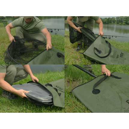 Zapomeňte na obavy z transportu mokrého a často nepříjemně zapáchajícího podběráku. Voděodolné pouzdro Delphin OmegaPAX je speciálně navrženo pro bezpečné uložení a transport podběráků. Díky svým rozměrům bez problémů pojme velké kulaté kaprařské podběráky typu Omega, ale stejně dobře poslouží i pro uskladnění jiných typů podběráků nebo úlovkových sítí. EVA materiál, ze kterého je pouzdro vyrobeno je naprosto nepromokavý, ale jeho velkou výhodou je i to, že neabsorbuje nepříjemné pachy, které jsou u mokrých podběráků běžné. O bezpečné uzavření se stará voděodolný zip, který účinně zabraňuje úniku vody a zápachu – díky tomu se již nemusíte obávat přenášení nevysušeného podběráku po skončení lovu. Materiál je navíc velmi snadno omyvatelný, což podstatně usnadňuje jeho údržbu. Pro pohodlný transport jsou na pouzdru pevnými svary připevněny dva popruhy. Spojení výborných funkčních vlastností, odolného provedení a decentního zeleno-černého designu činí z pouzdra Delphin OmegaPAX ideální volbu pro každého kapraře, který hledá výborný poměr mezi kvalitou, stylem a přijatelnou pořizovací cenou. Technické parametry: Rozměr:75x90cm