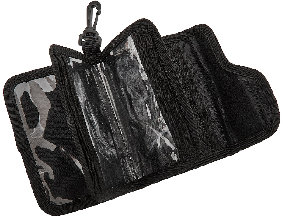 Pouzdro pro uložení spinnerbaitů nebo jiných nástrah. Obsahuje několik transparentních oddělených menších komor pro uložení nástrah. Zavírání na suchý zip. Karabinka na připnutí k tašce nebo vestě. Vyrobeno z odolné tkaniny 600D s vodoodpudivou úpravou.