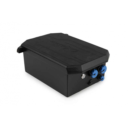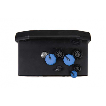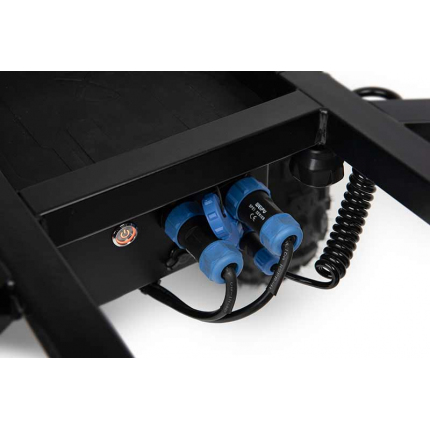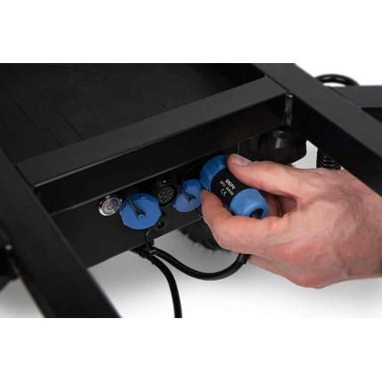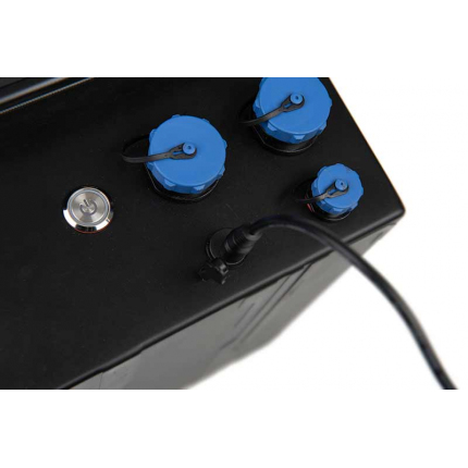 - Napájení pohonu kol zajišťuje napájecí skříňka s nabíjecím portem a vypínačem.