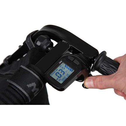 - Zobrazovací panel ukazuje rychlost, ujetou vzdálenost a stav baterie