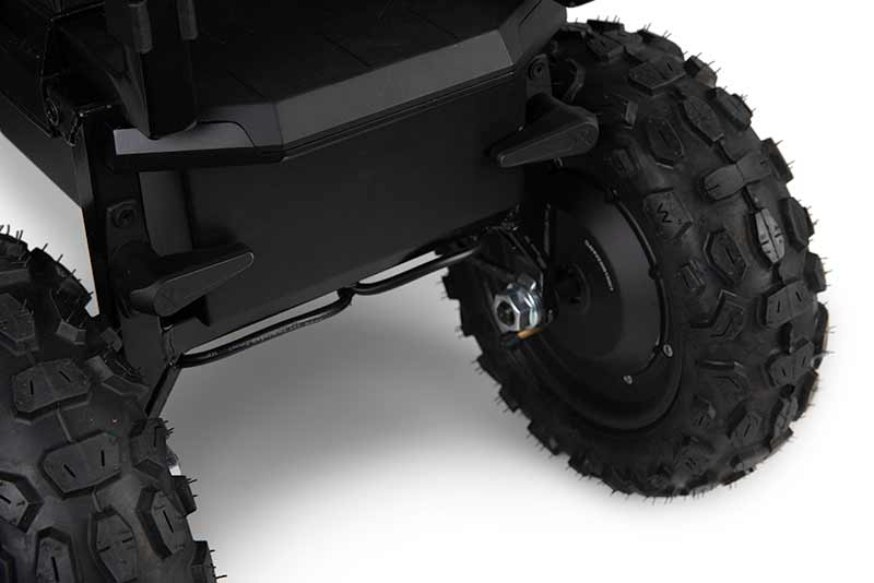 - Vozík je poháněný 130 W motorem ve středu kola, dohromady 260W výkonu.