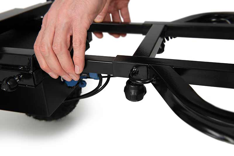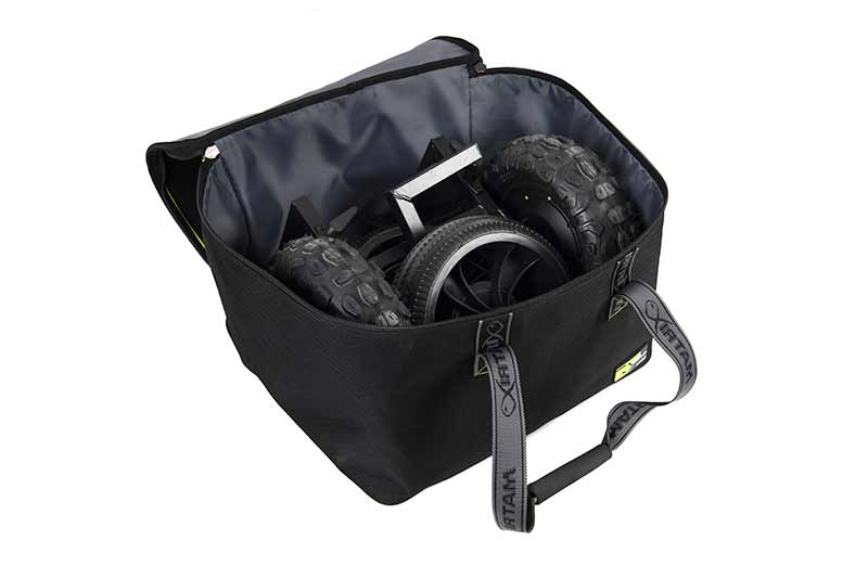- Součástí vozíku jsou dvě velmi odolné přepravní tašky, pro uložení ušpiněných kol odděleně od rámu vozíku.