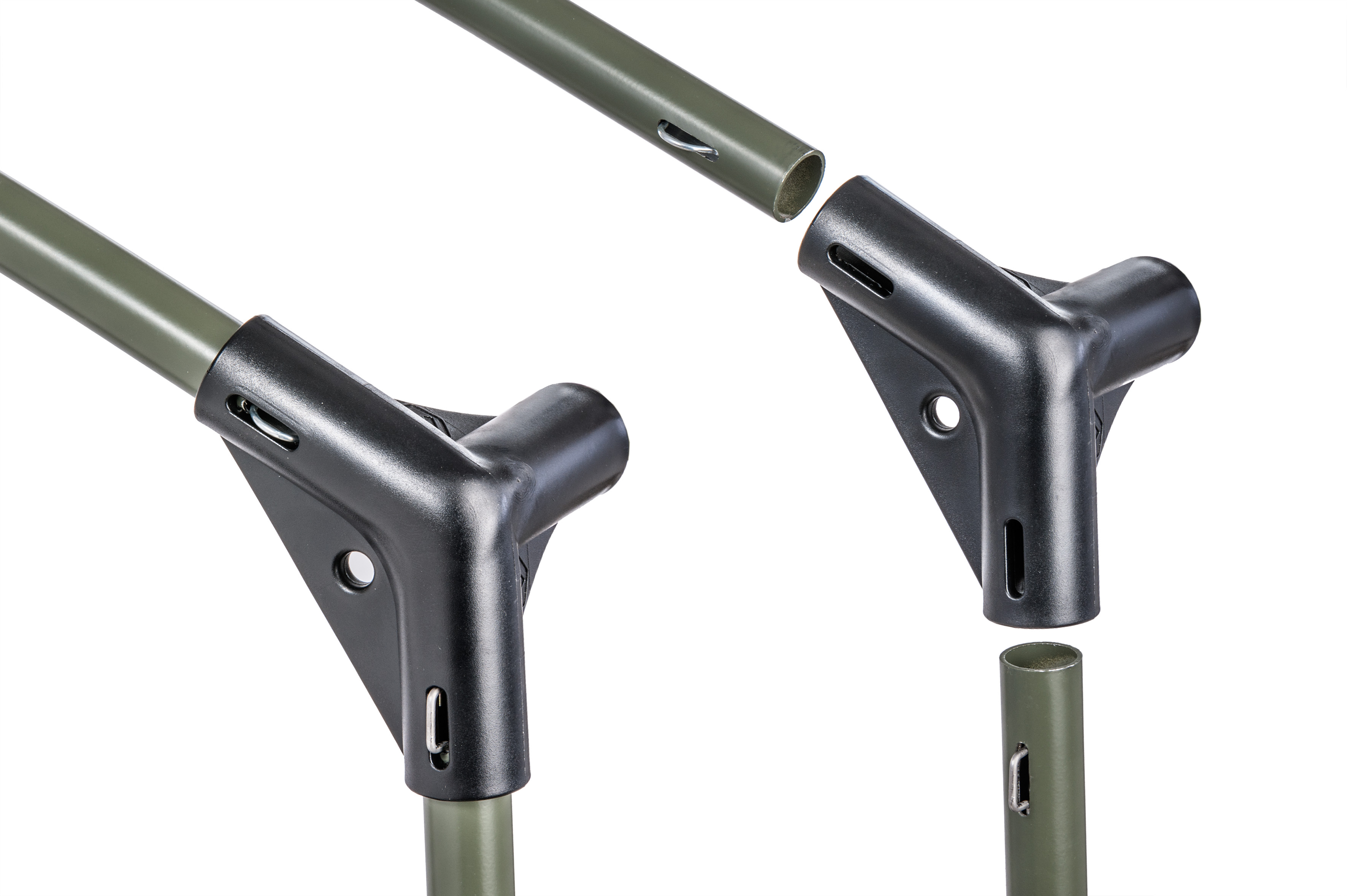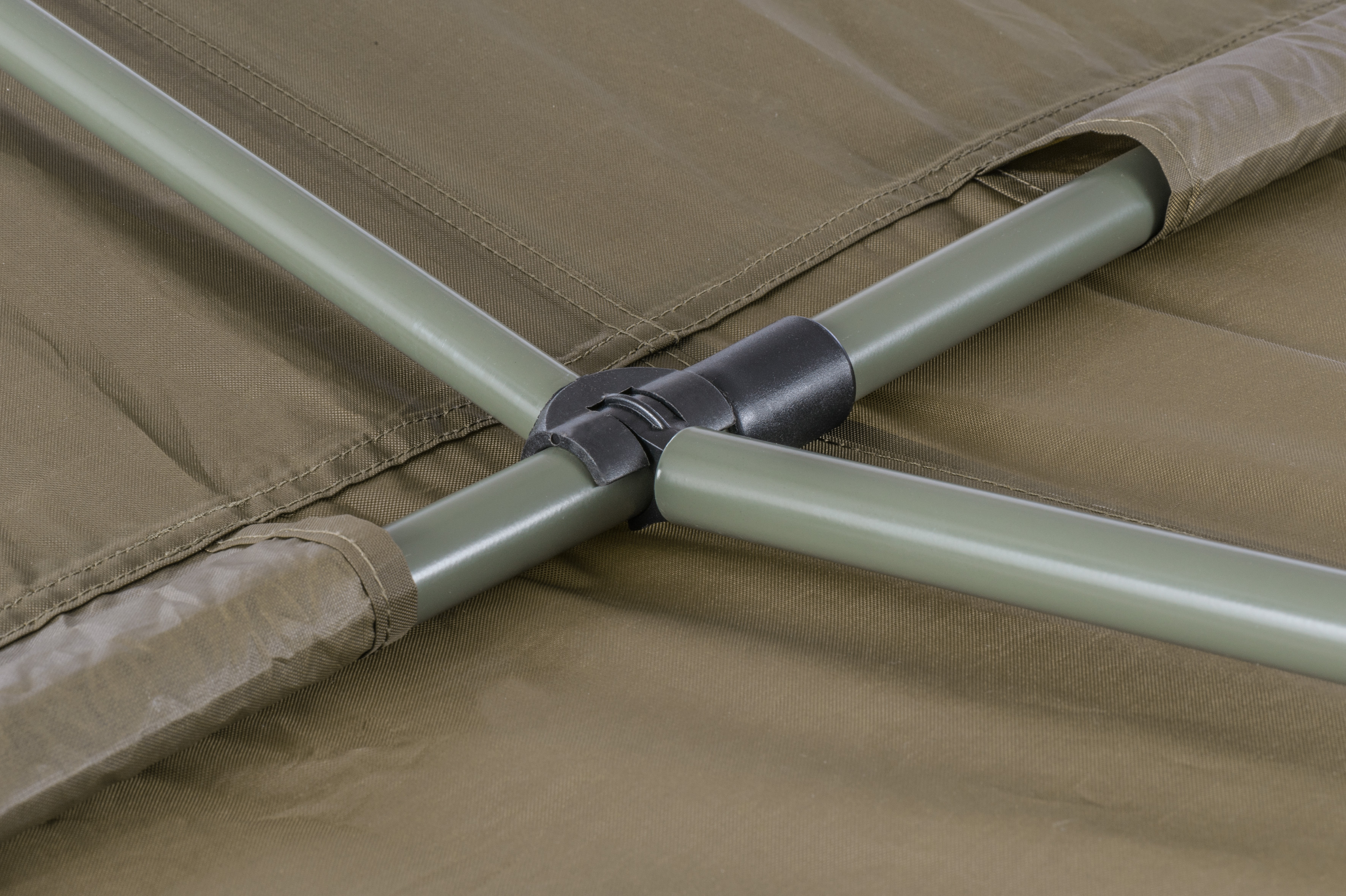Celý popisZcela přepracována je nosná konstrukce za použití trojcestných spojek mezi střešním žebrem, svislou stojnou a boční rozpěrnou tyčí. Trubky rámu jsou opatřeny pružinovými západkami, které pevně fixují jednotlivé části rámu ve spojce a výrazně usnadňují rozložení a složení přístřešku. Ve spojkách jsou zároveň otvory pro uvázání kotvících šňůr pro případ použití přístřešku ve velmi silném větru. Nové unikátní řešení střešní rozpěrné tyče a bočních rozpěrných tyčí výrazně snižuje jejich průhyb a zvyšuje jejich tuhost i nosnost. Zároveň umožňuje jejich složení na kratší transportní délku. Aretační zámky teleskopických výsuvů Mivardi s extrémní přítlačnou silou spolehlivě fixují rozpěrné tyče i při maximálním vytažení. Pro použití v extrémních podmínkách je jako příslušenství dostupná doplňková sada bočních rozpěrných tyčí. Přístřešek je připraven pro zavěšení dvou velkých, síťových organizérů s praktickými kapsami (dostupné jako příslušenství). Boční stěny a jejich fixace na nosné konstrukci jsou upraveny tak, aby bez problému unesly tyto rozměrné organizéry, naplněné až třemi kilogramy zátěže. Úprava fixace bočních stěn přispívá i k výrazně lepšímu napnutí potahu přístřešku. Příjemným vylepšením je i výrazně zvětšené zadní okno. Dalším zajímavým příslušenstvím je i samostatně dodávaný multifunkční držák prutů a podběráků, určený k nasazení na boční rozpěrnou tyč. K přístřešku je dostupný i samostatně dodávaný plnohodnotný zimní přehoz.