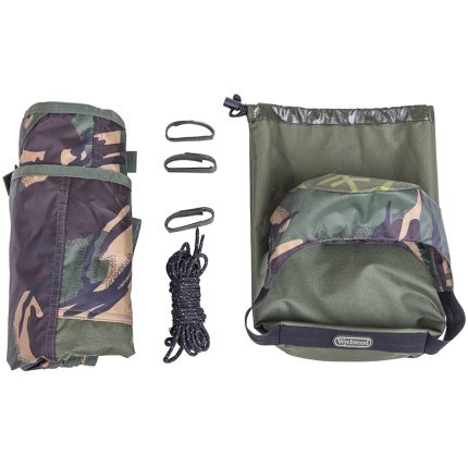 Další produkt od Wychwoodu, který si říká The Tactical Shroud, něco jako multifunkční a víceúčelová plachta. Nyní ve velikosti XL. Lze ji jednoduše připevnit k lehátku pomocí čtyř smyček, které jsou opatřeny suchým zipem, tedy v každém rohu jedna. Chrání nás pak před komáry, deštěm, ranní rosou a chrání hlavně i lehátko a spací pytel. Díky neskutečně funkčnímu materiálu a stoprocentně nepromokavému 10000mm HD Rip-Stop se nemusíme bát i velkého deště. Tedy jednoduše řečeno, nepotřebujeme žádný bivak či přístřešek, a můžeme klidně spát pod širým nebem. Specifikace: - materiál: 10,000mm voděodolný materiál HD Rip-Stop - kolem dokola nalezneme 18 tkaninových popruhů, které slouží k maximálnímu připevnění k danému předmětu - ve všech čtyřech rozích nalezneme podporu pro umístění podpůrných tyčí - lze také umístit na zem jako podlážku nebo použit i jako plachtu pro zakrytí materiálu, který musí zůstat suchý - 5 m reflektivního lana - včetně přenosného pouzdra v kombinaci zelené a camo barvy - rozměry: 2850 x 1850 mm