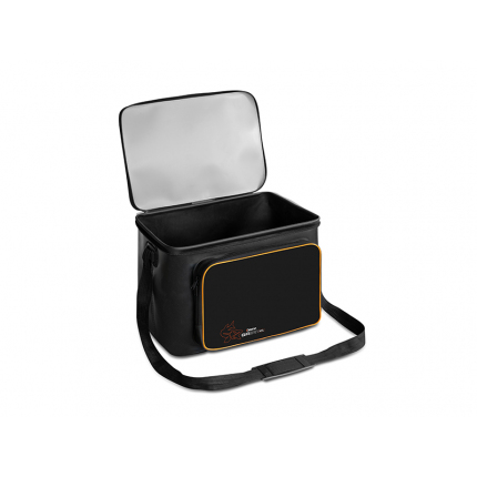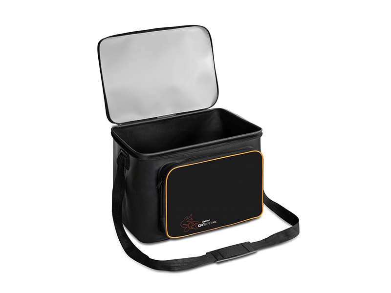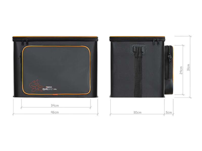 Praktická přívlačová taška vyrobená z kvalitního EVA materiálu, poskytující dostatek místa pro uskladnění různého vybavení a nástrah, které budete potřebovat při lovu dravců. Její velikost z ní činí ideálního společníka pro lov ze člunu, kdy je třeba před vodou uschovat množství rybářského vybavení. Díky nepromokavému EVA materiálu a kvalitně svařeným švům, Delphin EvaSPIN BOAT spolehlivě ochrání veškerý obsah i v nepříznivých deštivých podmínkách. Kromě odolnosti vůči vodě je tento materiál také snadno omyvatelný a neabsorbuje pachy, což umožňuje bezpečně přenášet také různé tekutiny, jako například dipovací spreje. Na přední straně se nachází zipovatelná kapsa, která poskytuje extra prostor pro drobnější příslušenství, což ještě více zvyšuje praktické využití tašky. Přívlačové tašky EvaSPIN mají moderní design v kombinaci černé a šedé barvy, kterou doplňují oranžové prvky jako například logo vyobrazující štiku. Pro pohodlný a snadný transport je taška vybavena délkově nastavitelným ramenním popruhem. Do vnitřního prostoru tašky lze uložit různé plastové boxy, jako například Delphin TBX One 350-8P Clip, přičemž do přední kapsy ideálně zapadne například krabice Delphin TBX One 225-15P, ale i další. Technické parametry: Rozměr: 46x30x31cm Rozměr přední kapsa: 34x5x24cm Objem: 43L