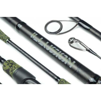 To přispívá k vynikajícímu výkonu při nahazování, jakož ik mimořádným rezervám síly při zdolávání ryb. Série Illusion se může pochlubit vším, co potřebujete pro lov štik, candátů, okounů a dalších druhů ryb. Pruty jsou osazeny kvalitními SIC očky ve stylu KW/KL/KT, sedlem navijáku ve stylu TVS nebo ACS a pevnými dělenými rukojeťmi Camou EVA Duplon.