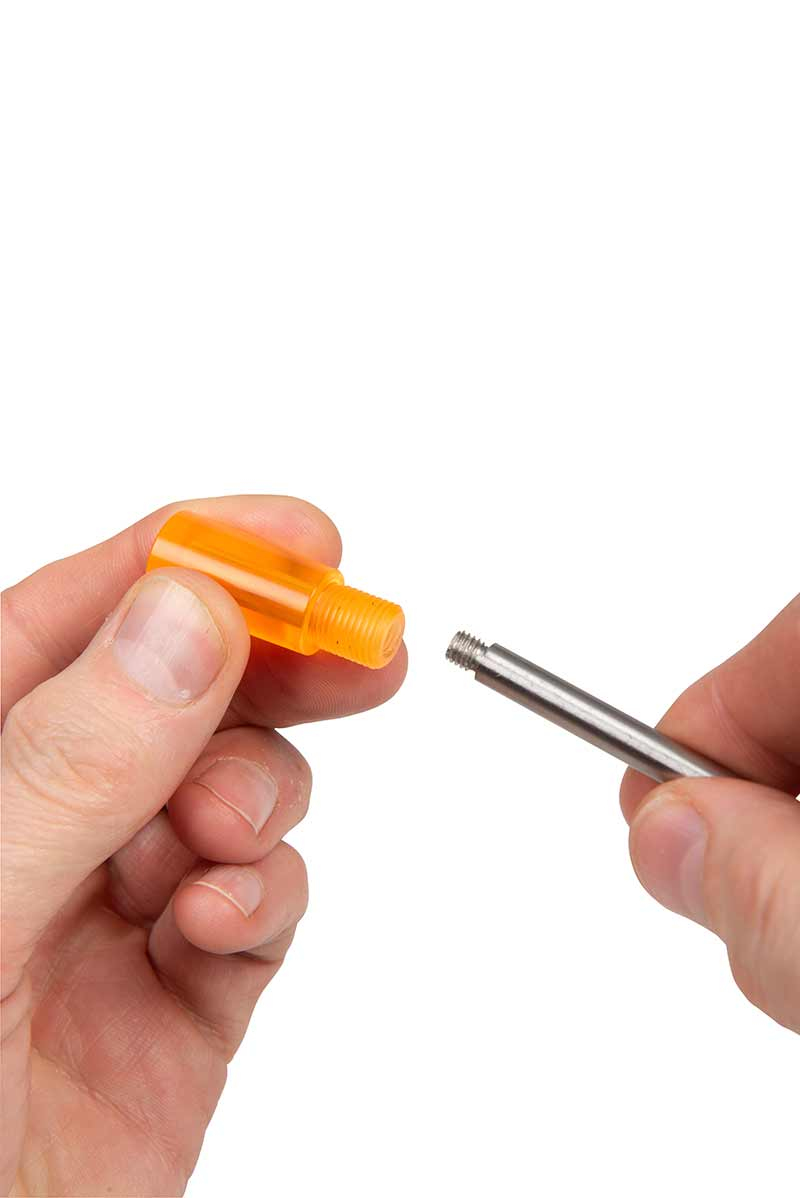 Měřicí tyče z vvysoce kvalitního hliníku se zavrtávacím hrotem. T- příčka z nerezové oceli zasunutá do tyče pro kompaktní skladování. Strojně pracované drážky podél tyče omezují sklouzávání vlasce. Průsvitný oranžový vršek s drážkou pro 25mm Izotop, gumová zátka spolehlivě drží na místě. Očka z nerezové oceli přivázaná na 13ft “měřicí šňůru”,...